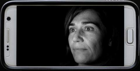 Les personnes photographiées visionnent sur l'écran de mon téléphone un extrait de 21 secondes du film de Jean Cocteau