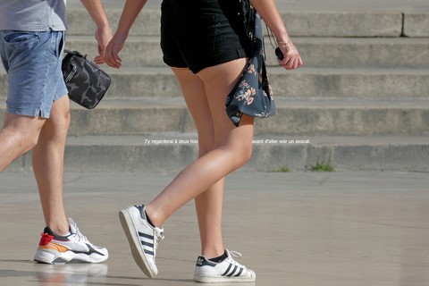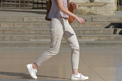 «Les jambes de femmes sont des compas qui arpentent le globe terrestre en tous sens lui donnant son équilibre et son harmonie.» dit la voix de Bertrand Morane (Charles Denner) dans L'homme qui aimait les femmes.J'ai repris au pied de la lettre cette phrase, devenant la matrice et le générique de cette série (revisitant par la même occasion le visuel de l'affiche du film). J'ai imaginé Bertrand Morane aujourd'hui, observant à la fin de l'été le défilé de jolies femmes Place de la Comédie à Bordeaux, devant les marches du Grand Théâtre. 42 ans après le film, les femmes, la mode, les mœurs ont changé, et le smartphone semble être devenu l'objet-fétiche obligatoire pour toute figure féminine au cœur de la ville. En suivant du regard ces jambes en mouvement, Morane se souvient de son roman, de son film: ainsi, j'ai inscrit dans les images des mots écrits ou prononcés par lui dans le cinéroman signé François Truffaut («mise en roman» d'un scenario de tournage»), dont on retrouve tous les dialogues.