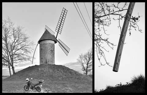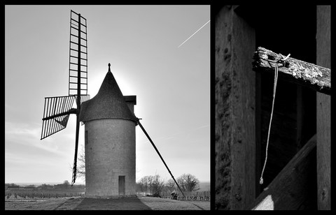 Peu nombreux en Gironde, je les découvre à flanc de colline, un peu perdus au milieu des vignes, figés dans une inquietante immobilité, les ailes dénuées de leurs voiles.