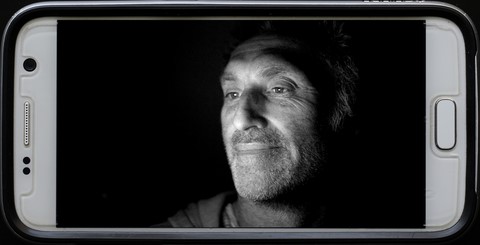 Les personnes photographiées visionnent sur l'écran de mon téléphone un extrait de 21 secondes du film de Jean Cocteau