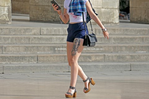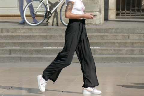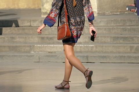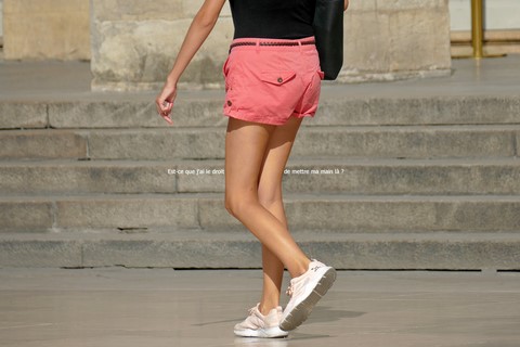 «Les jambes de femmes sont des compas qui arpentent le globe terrestre en tous sens lui donnant son équilibre et son harmonie.» dit la voix de Bertrand Morane (Charles Denner) dans L'homme qui aimait les femmes.J'ai repris au pied de la lettre cette phrase, devenant la matrice et le générique de cette série (revisitant par la même occasion le visuel de l'affiche du film). J'ai imaginé Bertrand Morane aujourd'hui, observant à la fin de l'été le défilé de jolies femmes Place de la Comédie à Bordeaux, devant les marches du Grand Théâtre. 42 ans après le film, les femmes, la mode, les mœurs ont changé, et le smartphone semble être devenu l'objet-fétiche obligatoire pour toute figure féminine au cœur de la ville. En suivant du regard ces jambes en mouvement, Morane se souvient de son roman, de son film: ainsi, j'ai inscrit dans les images des mots écrits ou prononcés par lui dans le cinéroman signé François Truffaut («mise en roman» d'un scenario de tournage»), dont on retrouve tous les dialogues.