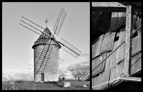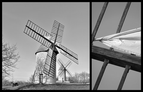 Peu nombreux en Gironde, je les découvre à flanc de colline, un peu perdus au milieu des vignes, figés dans une inquietante immobilité, les ailes dénuées de leurs voiles.